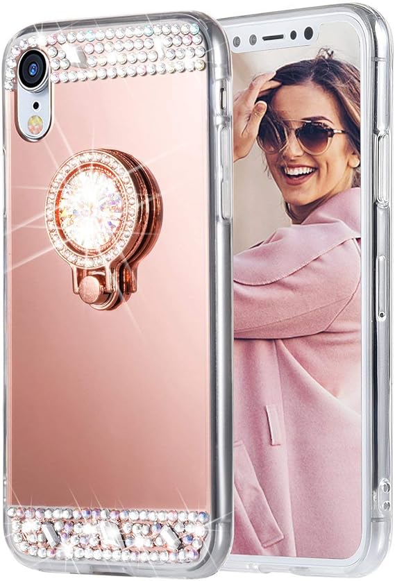 Caka Iphone Xr Case Iphone Xr Glitter Case Mirror Series Bling Luxury Cute Shiny Mirror Makeup Protective Tpu Case For Girls With Ring Kickstand