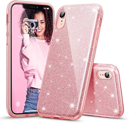 Kumeek Iphone Xr Case For Girls Women Cute Girly Glitter Bling Sparkly Pink Protective Phone Cover Cases For Apple Iphone Xr 6 1 Rose Gold