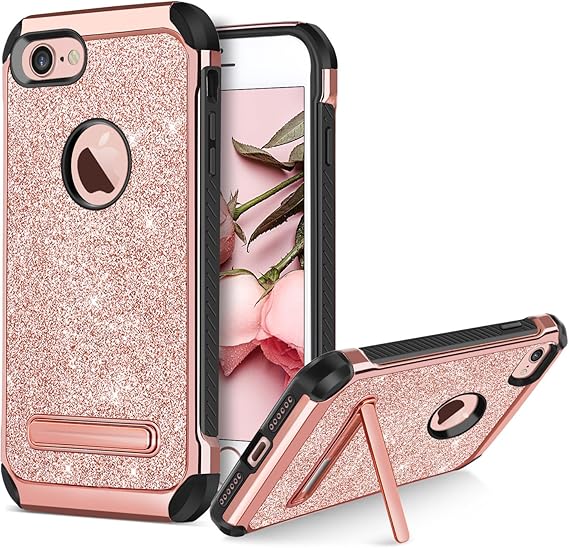 Bentoben Phone Case For Iphone 7 Kickstand Glitter Bling Sparkle Dual Layer Heavy Duty Soft Tpu Hard Pc Shockproof Protective Cases Cover For Girls